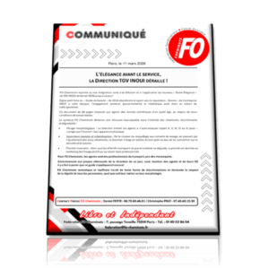 Communiqué L’élégance avant le service, la Direction TGV INOUI déraille ! FO Cheminots exprime sa vive indignation suite à la diffusion et à l’application du nouveau « Guide Élégance » de TGV INOUI de février 2026 jusqu’à ce jour! Digne petit