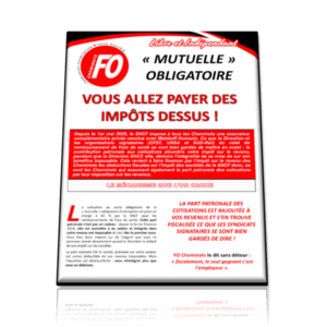 TRACT Fédéral « MUTUELLE » OBLIGATOIRE VOUS ALLEZ PAYER DES IMPOTS DESSUS ! Depuis le 1er mai 2025, la SNCF impose à tous les Cheminots une assurance complémentaire privée conclue avec Malakoff Humanis. Ce que la Direction et les organisations signataires (CFDT,