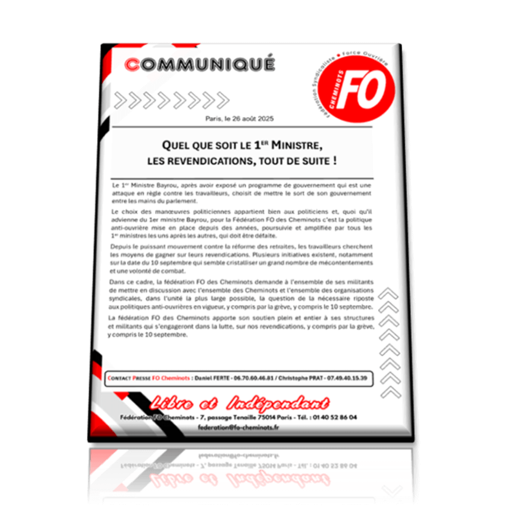 La Fédération syndicaliste FO des Cheminots tient par ce communiqué à apporter